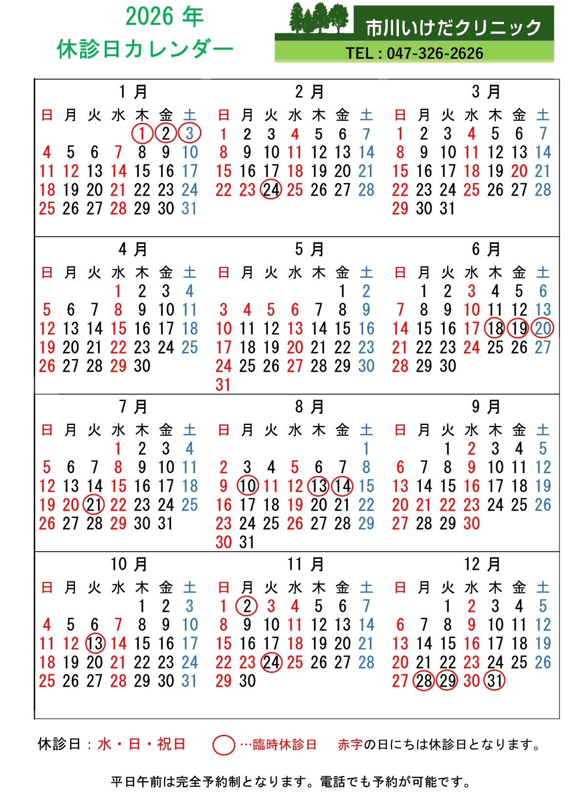 院長が他院受診及び検査ため以下を臨時休診とします。